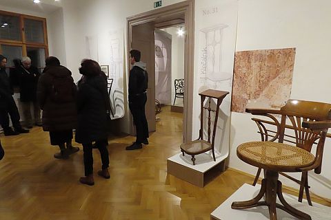 Javno vodstvo po novi občasni razstavi Čar in lepota upognjenega lesa od Thoneta do danes