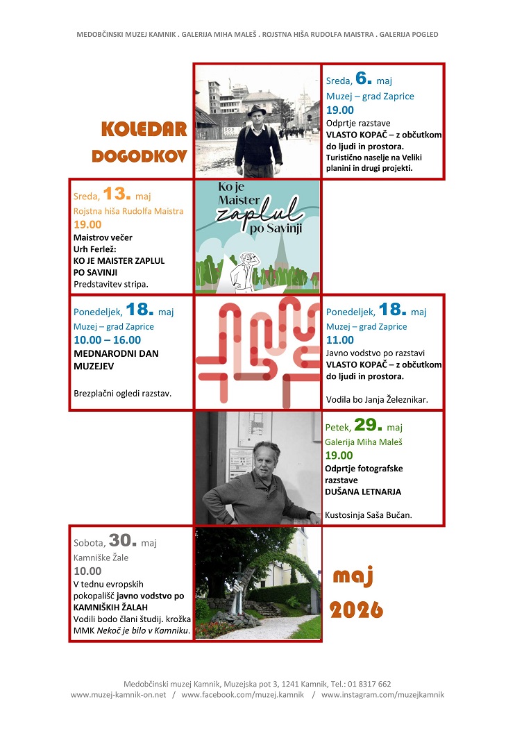 Vljudno vabljeni na majske prireditve v Medobčinski muzej Kamnik.
