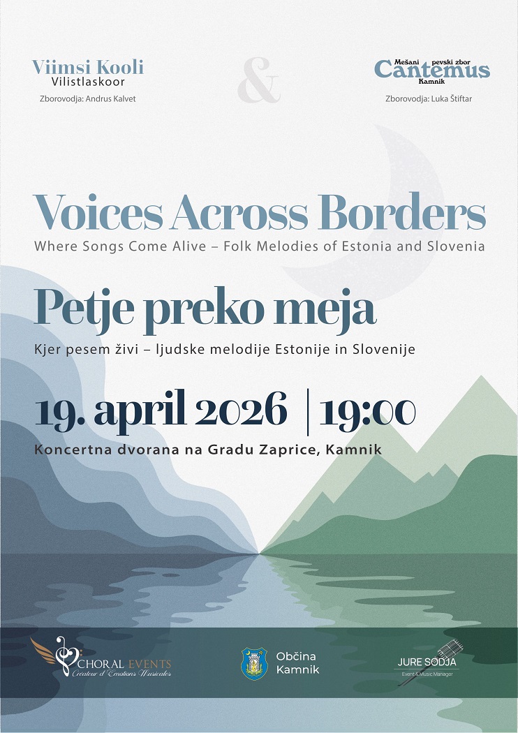 Vsi ljubitelji zborovske glasbe ste prisrčno vabljeni na koncert domačega pevskega zbora Cantemus (zborovodja Luka Štiftar), ki bo gostil estonski pevski zbor Viimsi Kooli Vilistlaskoor (zborovodja Andrus Kalvet).