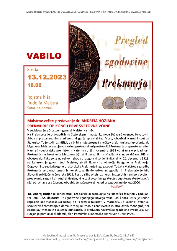 Maistrov večer: dr. Andrej Hozjan - Prekmurje ob koncu 1. svetovne vojne
