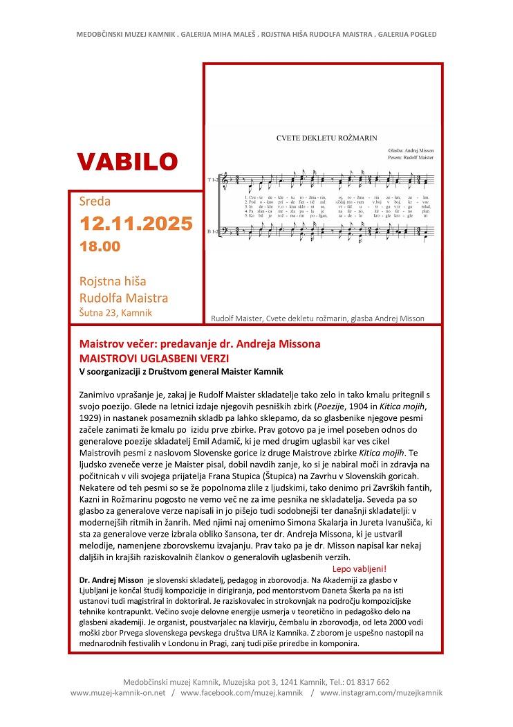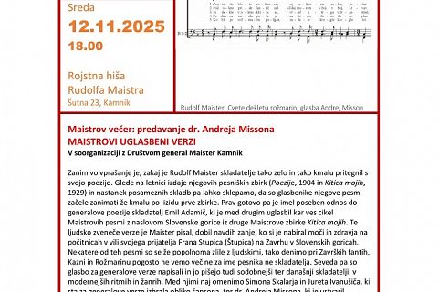 Maistrov večer: dr. Andrej Misson - Maistrovi uglasbeni verzi
