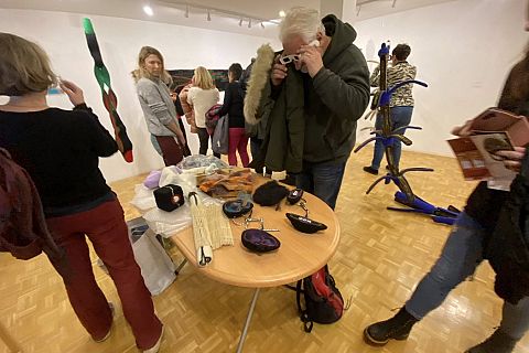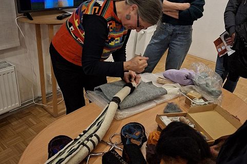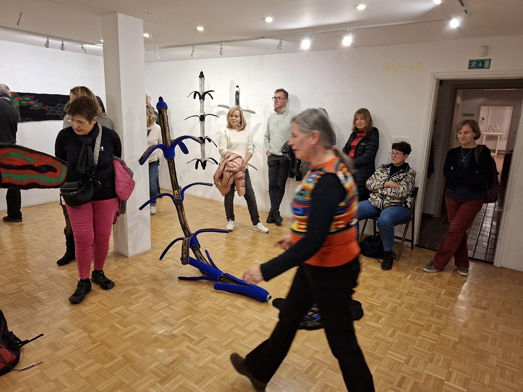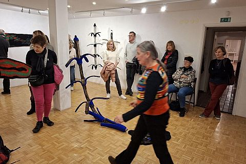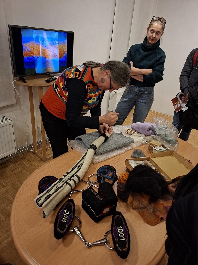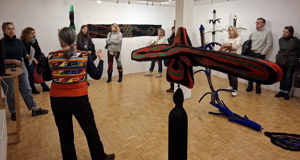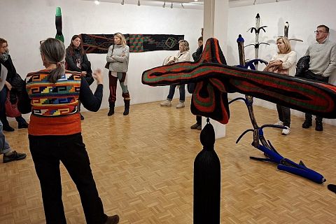 V izteku razstave V jedro se bo kustosinja Saša Bučan pogovarjala z umetnico Sabo Skaberne. Zakaj se je iz klasičnih kiparskih materialov preselila v ustvarjanje polstenih objektov. Ali polst kot mehka snov vnaša drugačen čustveni naboj kot klasični kiparski materiali. Kako obrtniška tehnika polstenja postane sodobni kiparski izraz. Kako pomembna je taktilnost v njenem umetniškem jeziku. So umetnici blizu staroselske kulture. O tem in še čem bo tekel pogovor.