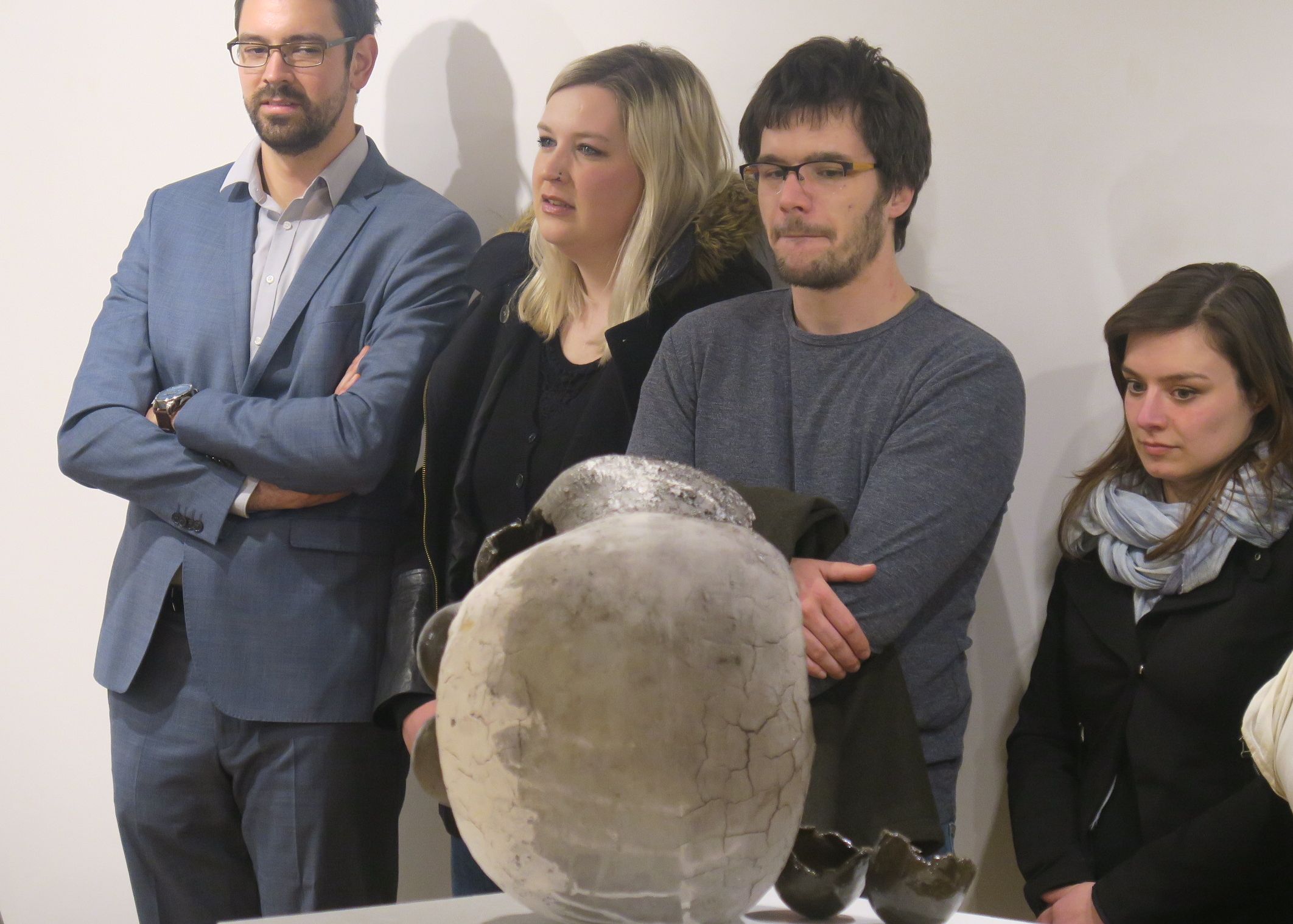Tamara Bregar je novo ime v sodobnem slovenskem kiparstvu in se tokrat prvič samostojno predstavlja s povsem svežim kiparskim ciklom. V njenem delu se očitno kažeta predvsem dva izziva, ki se neprestano postavljata pred umetnico: na eni strani izjemna občutljivost in nepredvidljivost gline kot materiala za ustvarjanje keramike, na drugi pa raziskovanje forme. Zahteven in predvsem nepredvidljiv je sam proces dela; na začetku umetnico omejuje že materija sama, tj. glina, zato vanjo, njeno osnovo, jedro, posega z različnimi materiali, ki v teksturo, površino in obliko vnašajo raznovrstnost in večplastnost, na koncu pa jo čaka še nepredvidljivo obnašanje materiala v peči.