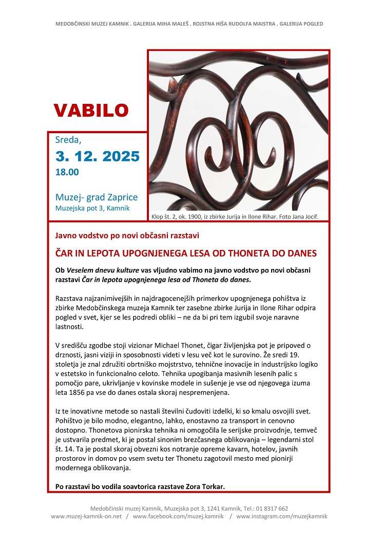 On Ta veseli dan kulture (Happy Day of Slovene Culture), you are kindly invited to a public guided tour of the new temporary exhibition The Charm and Beauty of Bentwood: From Thonet to Today.