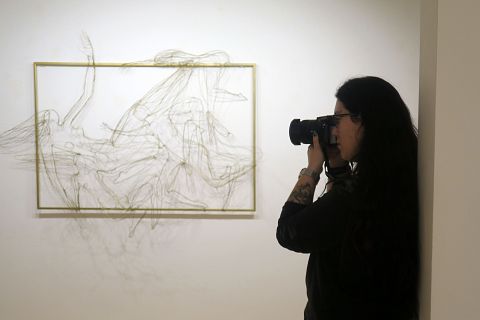 “… Tea Curk Sorta is based on two guidelines in its artistic expression. On the one hand, from the understanding of graphics, on the other, sculpture. If her firsts were directed to a pure sculptural form, with the introduction of wire as a material for her works, she began to interweave both elements of the two fine arts, that is, both line and volume. The idea that he introduced to the fine arts as a form of kinetic art, an art that is not only content and form-satisfying, but also a movement, was introduced by mobile pioneer, American sculptor and painter Alexander Calder, back in 1929 when it was on display at his first solo exhibition in Paris, he exhibited so-called drawings in a space called Cirque Calder. In her expression, Tea Curk Sorta combines sculpture and graphics into a timeless play of two- and three-dimensionality. Wire drawings, three-dimensional drawings, also drawings in the space used to curl female figures, paint a kind of shadow paintings, shadow drawings on the walls of the room. The cost-effectiveness of the material allows her to place her figures in space, but does not in any way hold them. It leaves them free to move, it allows the viewer to create a shared dynamic as he reaches into the space of the figure itself with his own movement…. ”