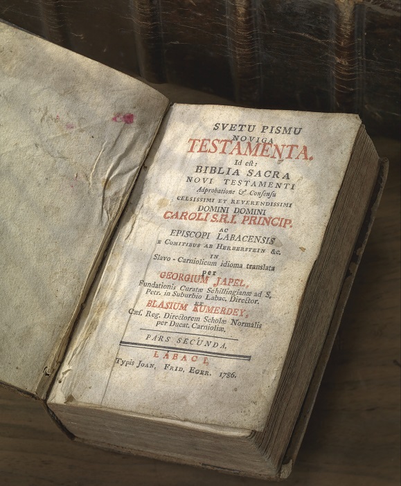Japelj’s most important work was a new translation of the Bible into Slovene language. He started in 1783 and invited the teacher Blaž Kumerdej, who was considered the best connoisseur of Slovene language, to participate. They took the oldest Latin translation and the Dalmatian Bible as a basis. Japelj and Kumerdej first published the New Testament in two books (1784, 1786). Despite some criticism, this is the first Catholic translation of the Bible in Slovene language, which was published almost two hundred years after the Protestant one.