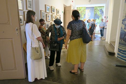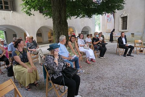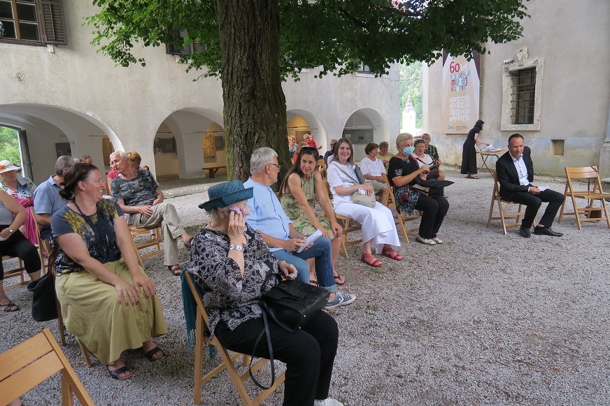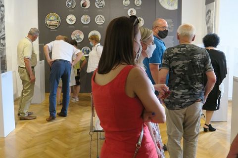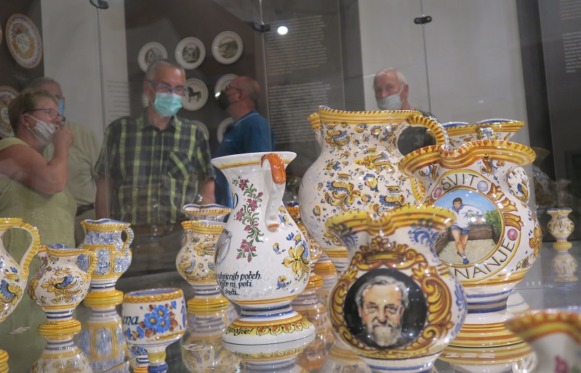 Yesterday, on July 8, 2021, we opened the exhibition Slovenian Majolica in the museum at Zaprice Castle, which will be on view until the end of May 2022. This is a joint project of the National Museum of Slovenia and the Intermunicipal Museum Kamnik. The program was led and connected by Marko Kumer, and the welcoming words were given by the director of MMK, mag. Zora Torkar. The entire project and the history of majolica were presented by dr. Mateja Kos from NMS. The exhibition was opened by the Deputy Mayor of the Municipality of Kamnik Bogdan Pogačar. While visiting the exhibition with the authors of the exhibition dr. Mateja Kos, Sašo Bučan and Marko Kumer, film presentations, presented a typical ceramic painting by Irena Radej.