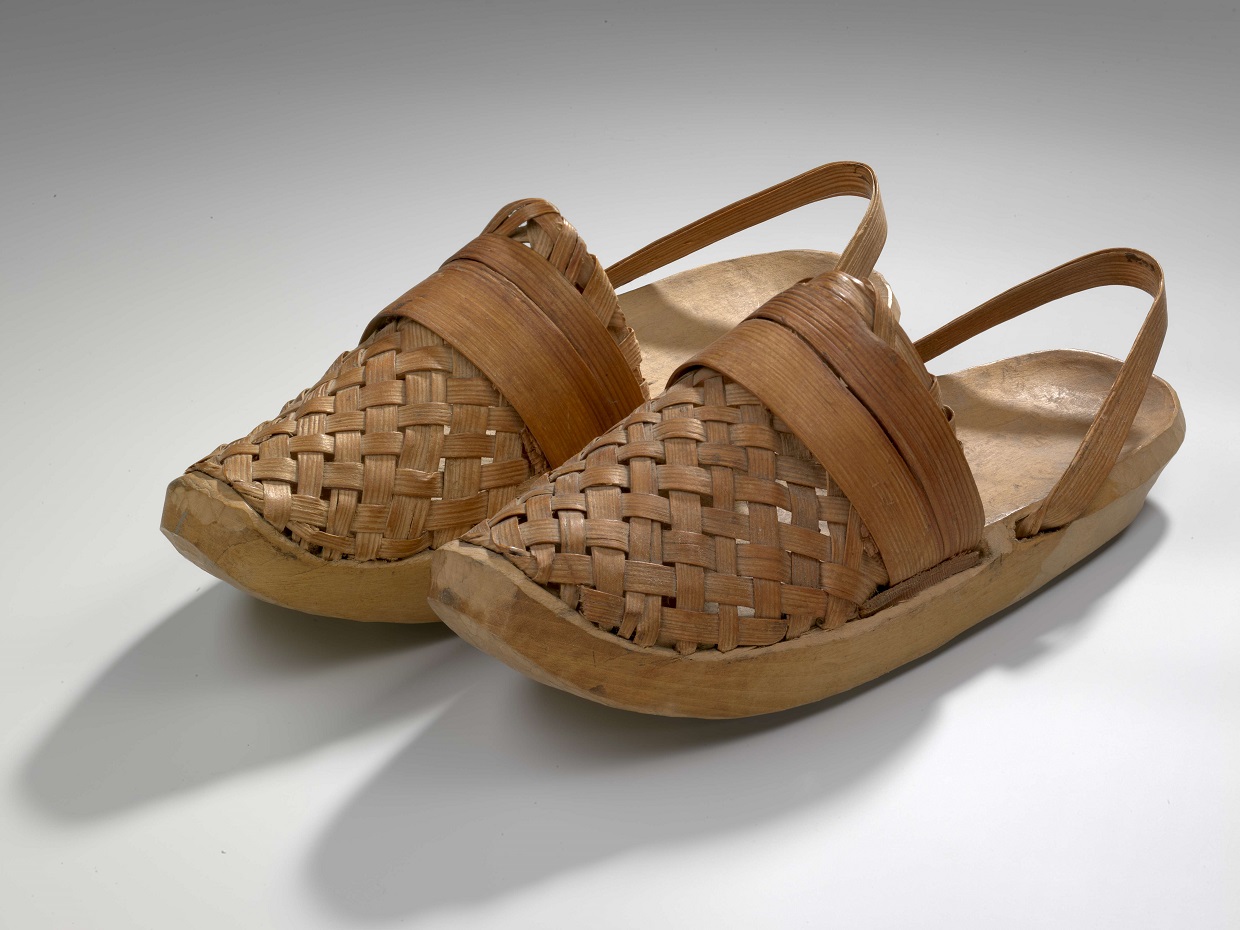 Shepherd’s shoes are from wood, mostly maple, on Velika planina, with a distinctive knit upper made of larch wood (later replaced by leather). The sole was protected with nails for safer walking. It is believed that the nails appeared around 16-17 century. They are often found as archaeological finds in shepherds’ huts in settlements. Shoes are from the Vlasto Kopač collection and were modelled after old one, around the 1950s.