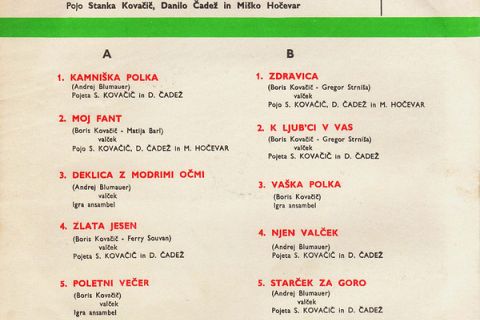 Prvič so skladbo, ki je bila naslovljena Kamniška polka, posneli člani Ansambla Borisa Kovačiča in jo leta 1965 uvrstili na 10-inčno ploščo z osmimi skladbami. Med njimi je bil tudi valček Zlata jesen z besedilom Kamničana Ferryja Souvana. Ploščo so naslovili po nosilni pesmi – Kamniška polka, a ji že dodali nadnaslov Veselo v Kamnik. Polko sta odpela soproga vodje zasedbe in harmonikarja Borisa Kovačiča, Stanka Kovačič in Danilo Čadež. Lahko ji prisluhnete: